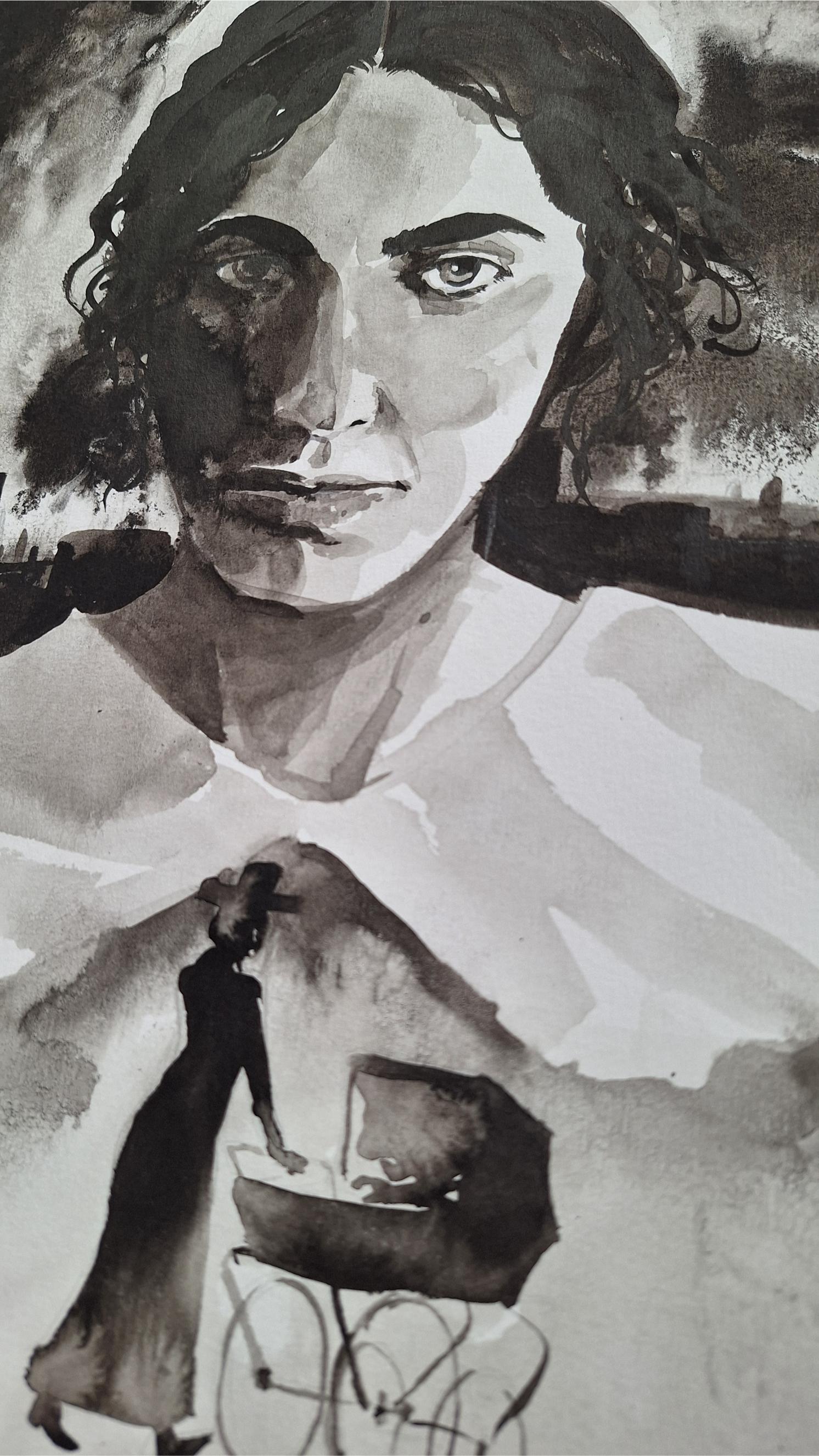 Ilustración original a tinta de la película LA CHICA DE LA AGUJA.
